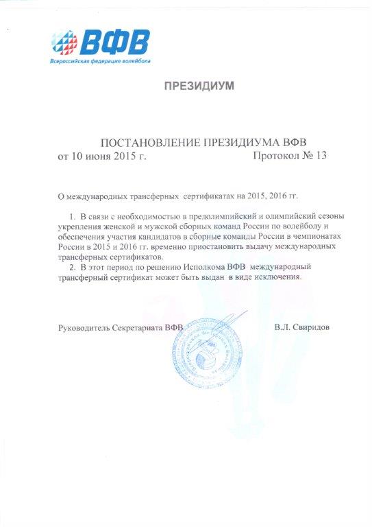 Первая гласит о временном приостановлении выдачи трансферных сертификатов кандидатам в сборные команды России на предстоящий клубный сезон. Интересно, что сообщения о заключении контрактов с зарубежными клубами кандидатами в женскую сборную России были опубликованы раньше постановления об ограничении, в котором, конечно же, есть пункт об исключениях. Думаю, что все будет улажено в процессе переговоров, и стороны найдут компромисс. Изначально только, процесс становления игрока кандидатом в сборную России никак не регулируется. Сначала игрок проявляет себя в игре за выбранный им совместно с руководством клуба коллектив, а потом только попадает в поле зрения курирующих женский волейбол в России. Простой пример: Екатерина Любушкина не была интересна сборной России до ее перехода в итальянский Бусто-Арсицио, где она смогла заиграть на более высоком уровне, чем в новоуренгойском «Факеле», впоследствии, получив предложение из московского «Динамо» и вызов в сборную.  Но на Кубке Ельцина в составе, утвержденном тренерским штабом сборной России, выступала Ксения Кравченко из Воронежа. Талант пробьет себе дорогу, как известно.