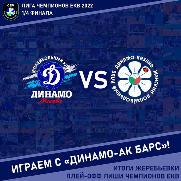 Dynamo Moscow's opponent in the Champions League quarterfinals was Dinamo-Ak Bars Kazan. The first match will be held in Kazan on March 9, the second - on March 16 in Moscow.
