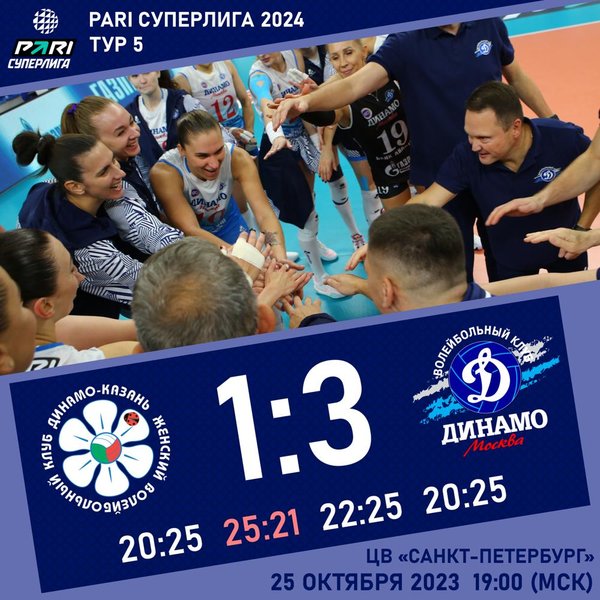 Dinamo volleyball players beat Dynamo-Ak Bars with a score 3:1 (25:20, 21:25, 25:22, 25:20) in the guest match of the fifth round of the PARI Super League.