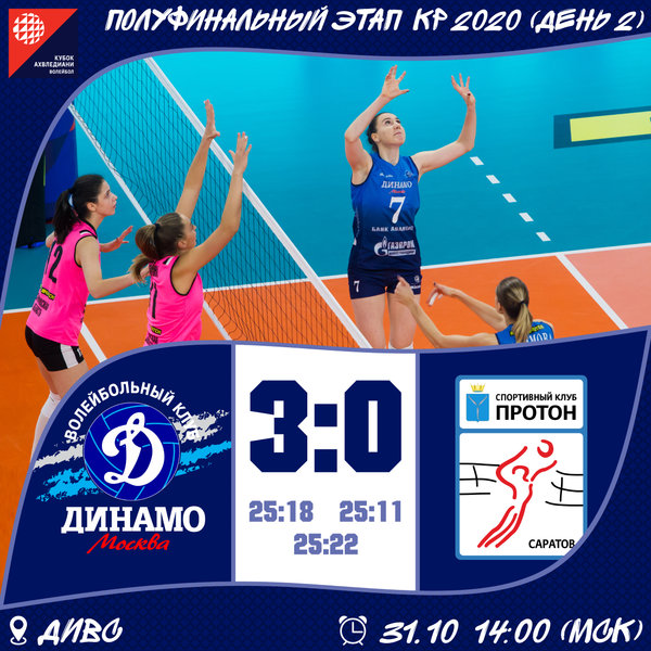 «Dinamo» (Moscow) – «Proton» (Saratov) 3:0 (25:18, 25:11, 25:22)